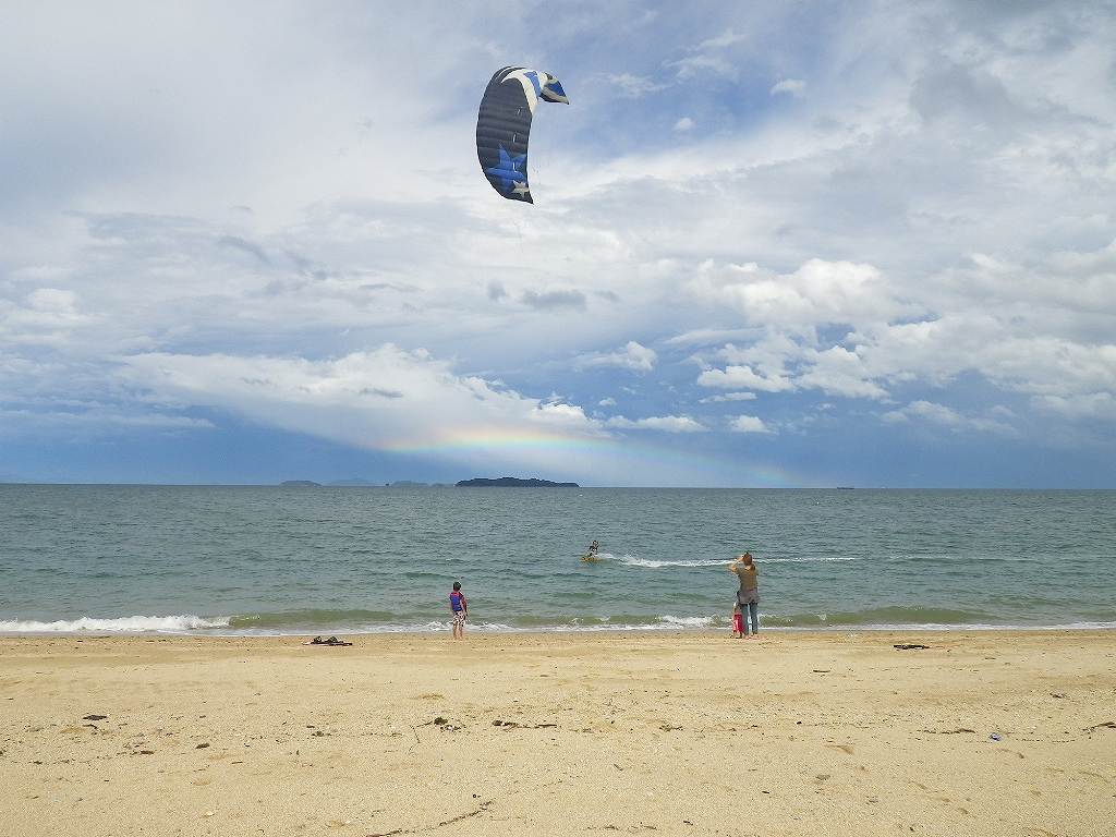 微風・灼熱の堀江海岸で数回、カイト操作の基本を伝授した。空中で「安定」が維持できるほど楽なコンディションでもなく、たぶん途中で「もういいわ」ということになるのではないかと思っていたら、大汗をかいてフラフラするような時があっても、自ら止める気配が全くない。これはどうやら本気らしい。私の心底がニッコリ笑った。