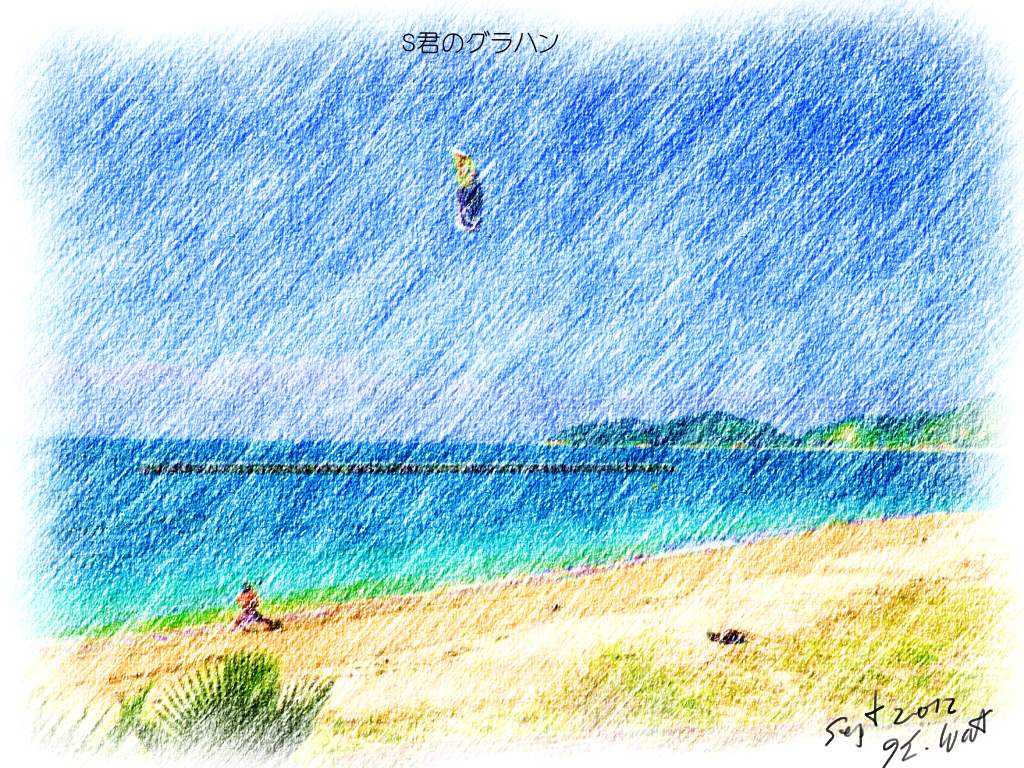 昨日は、こないだからカイトを始めたS君の5回目の練習日だった。彼とはすでに28年の付き合いになる。私は彼のことを「バスケ好きの英語オタク」で、典型的なインドアタイプの青年らしいと評価していたが、今年の夏になって、「サーフィンにはちょっと興味がある」と呟いた。これを私が聞き逃すわけがない。