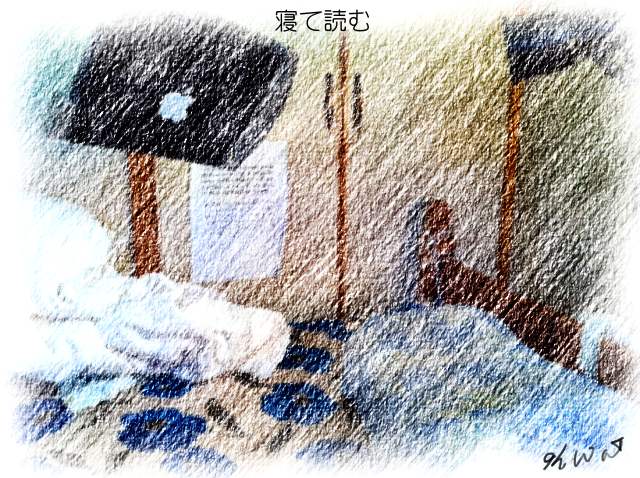 気が向いたときに、気が向いた本から、気が向いた方法で読み始める。数ヶ月前から採用した方法に、「寝て読む」というのがある。ベッドの枕の上に所見台を取り付けて、上向きに寝たままIpadのキンドル本を読むのである。