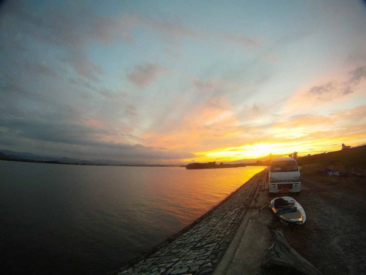 最終15日は、一緒に松山周辺まで移動して、北の端から南の端までの主要エリアを見物し、最終的には塩屋海岸の南風5m前後のガスティ・ウィンドでそれなりの練習ができた。西に落ちる夕陽を眺めながら、私は「ありがたい」と思った。
