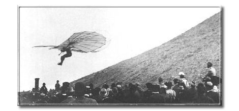 あまり広くは知られてないが、日本でも、幾らか有名な愛媛・八幡浜の二宮忠八に先立つこと百年以上の江戸時代中期、備前(岡山)の表具師(家具職人)・浮田幸吉《うきたこうきち》は、リリエンタールの滑空翼に似たものを自作して、橋の欄干からの滑空飛行に成功した・・・という間接資料がある。