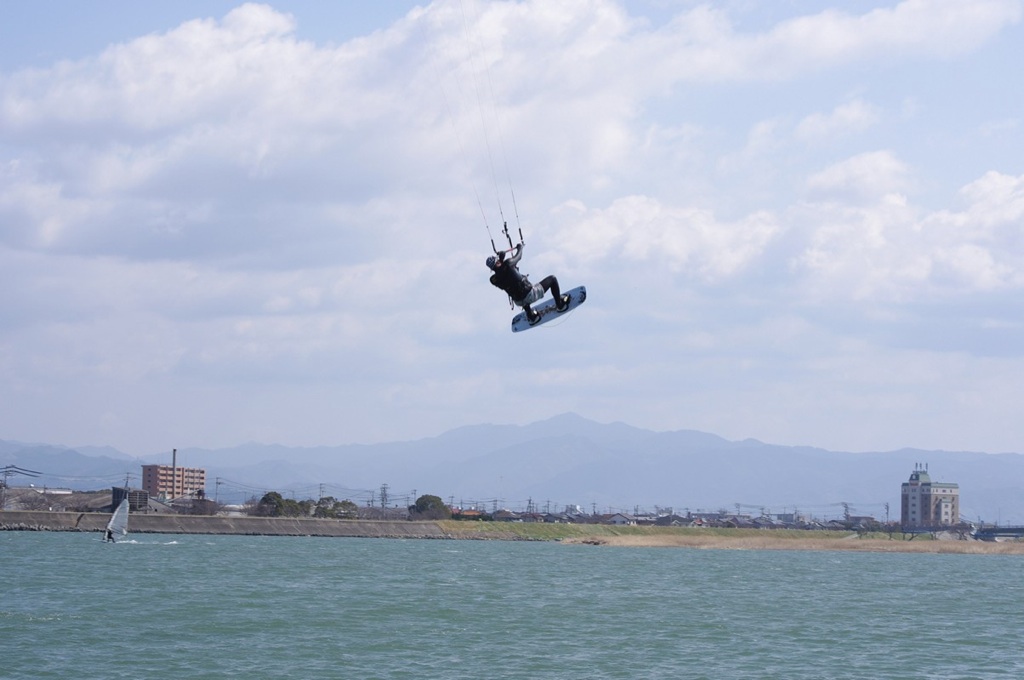 15㎡。ジャンプ着水の失敗でハットを飛ばした。休憩で浜に帰るまで気が付かず、順潮に乗ってひさしぶりに怪島の西方まで探しに出かけるが、海での落としものが見つかるのはよほどの幸運が必要らしく、3月の鹿児島で手に入れたちょっとお気に入りのサーフハットとも2ヶ月足らずでさようなら・・・となった。