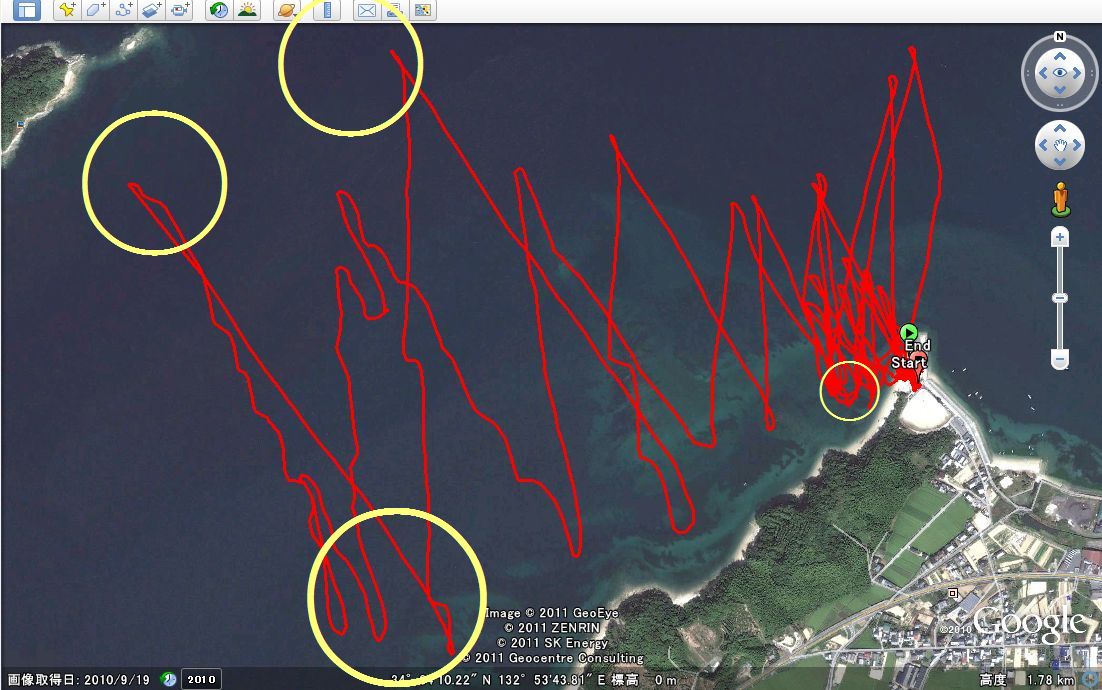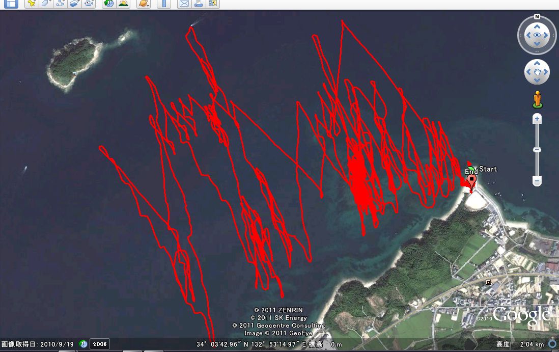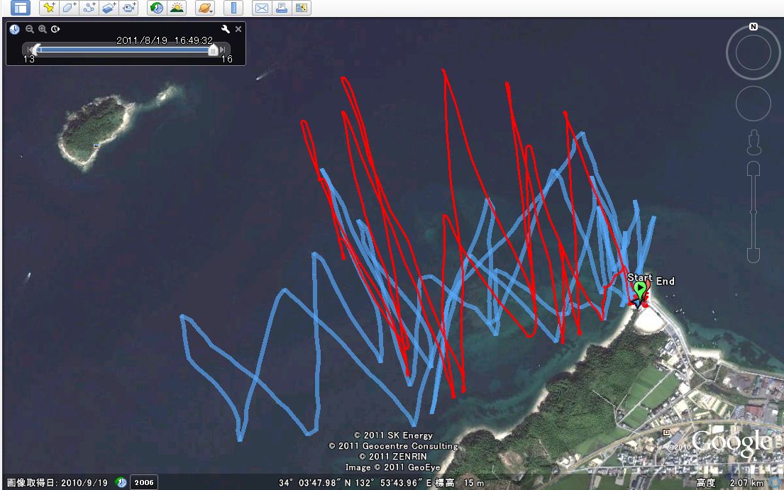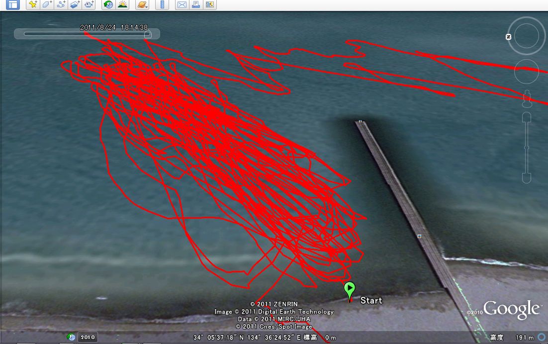 昨日と似たような気圧傾斜だったので、それなりの北風が入るだろうとは予想していたが、昼を過ぎてから6m程度まで上がってくれた。カトちゃんが12㎡で練習を始めるにはちょうど良い風。基本操作は5㎡ですでに身に付いている。初対面の12㎡ラムエアの扱い方の要点だけを説明して、私は19㎡で1時間ほど走る。
