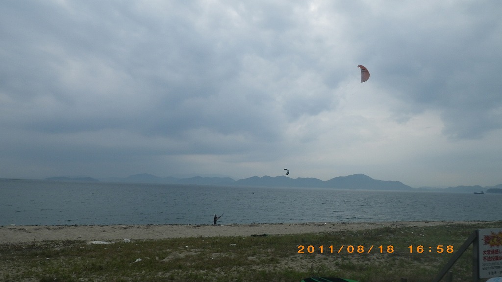 日本の海水浴場は、例年、お盆を過ぎるとグッと人出が減少し、どこか寂しい秋の空気が漂い始めるものだが、今日は夏休み最後の日曜日だ。今治から松山に至る海岸道路沿いの砂浜はどこも真夏の人出を保ち、和気浜や堀江もずいぶん賑やかだった。