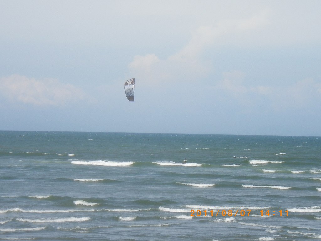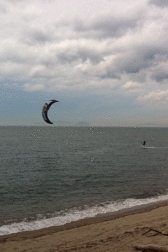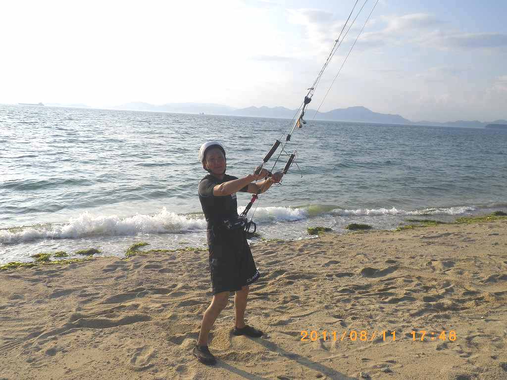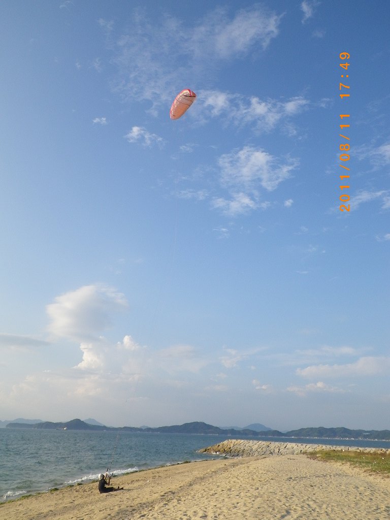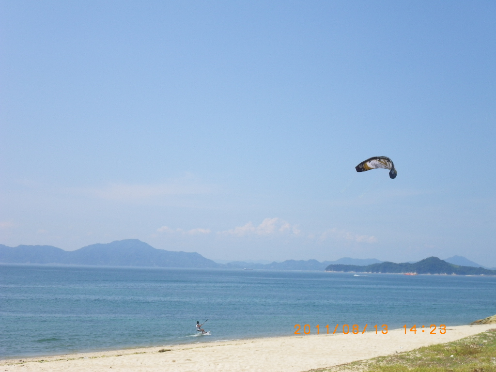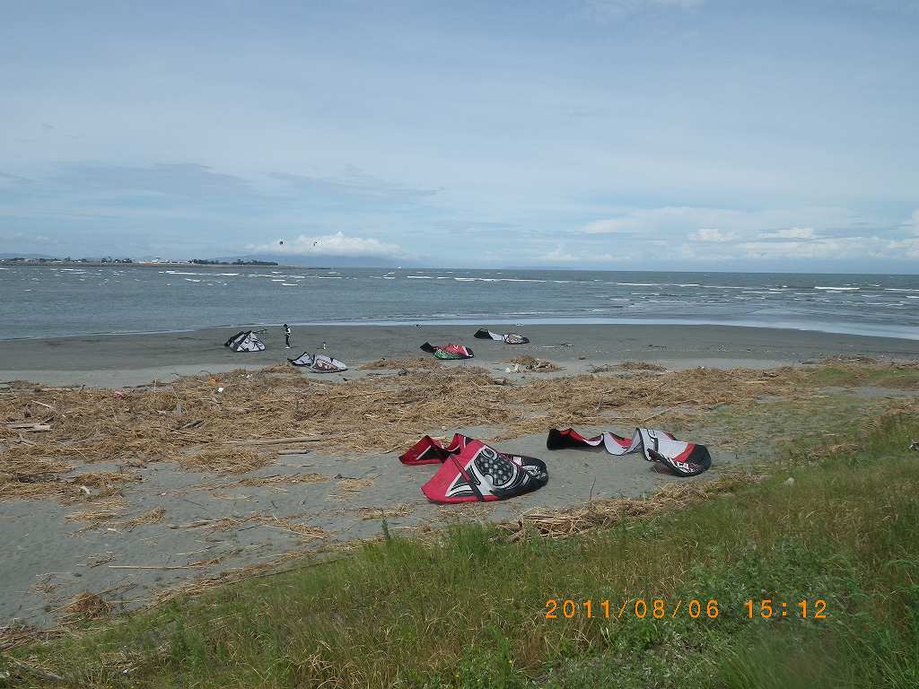 やはり、それなりの南西ブリーズが入り、皆さんそれなりの走りで楽しむことができた。久しぶりにM君の走りを見たが、ちゃんとジャイブスイッチをマスターしている。身軽な彼にはトルク重視の12平米に適当な板を組み合わせれば、大概の風で走れそうだということもよく分かった。