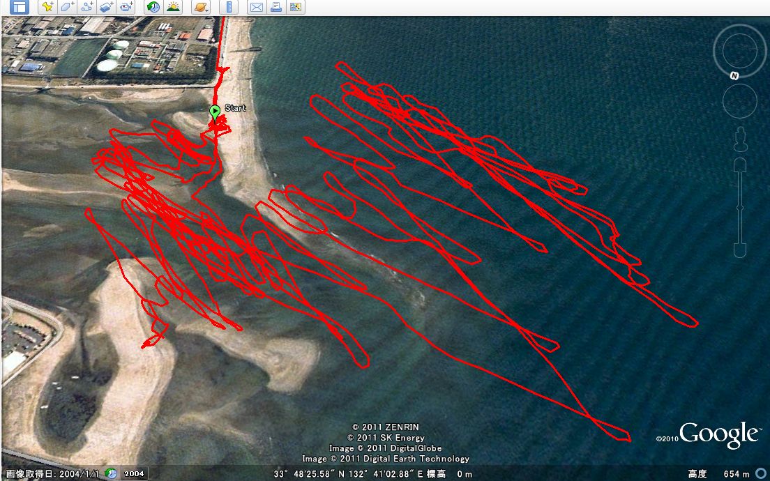 2度目は1年余り経ったやはり粟井海岸で、近くのマリーナの方が、少々沖の方にチンしてカイトを漕いでいる私を見て海保に通報したらしい。私がほどなく帰ってくると、「遭難したと思って海保に通報しました。今から取り消しの連絡を入れます」ということだった。私のことは何も知らないわけで、割と寒い季節に海を漂流すると危ないと考えたらしい。私が「風も潮もしっかり計算しながらがらやっていることだから大丈夫なんですよ」と説明を加えたら、じゅうぶん納得した様子だった。