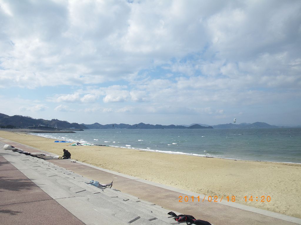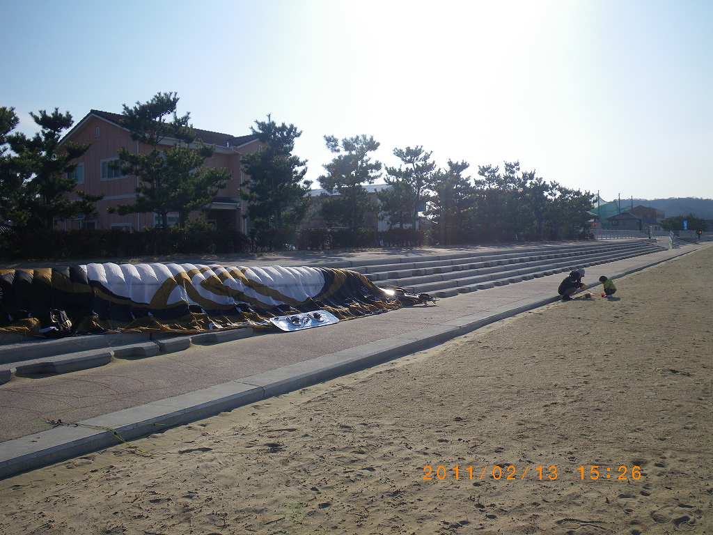 昨日も出かけた堀江海岸は割合まともな北東風。風はまだ冷たいが、セミドライを着込むと全く寒さを感じることはない。少しは特性が分かり、根元で切れたラインをそのまま短めにして修理を終えた15㎡にディレクショナルで少し飛び方を覚えながら上れるだけ上ってみよう・・・と、風が東に寄りながら引き始めた海に出た。