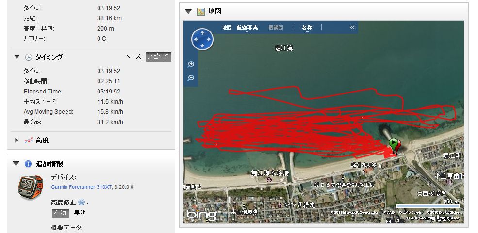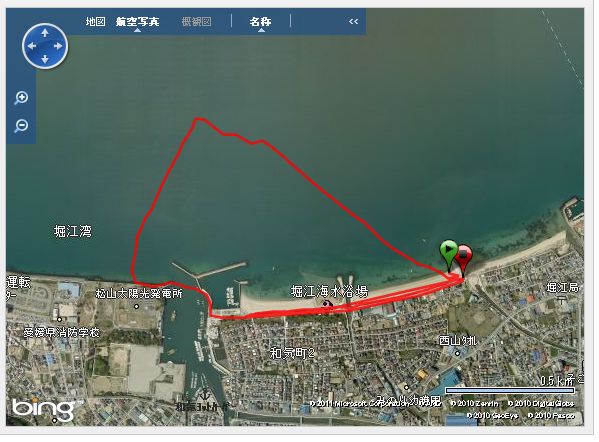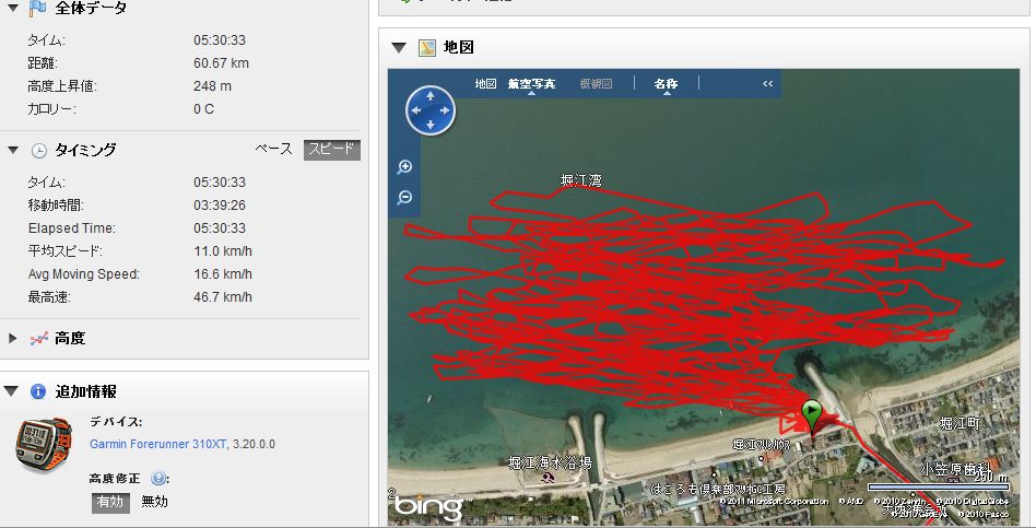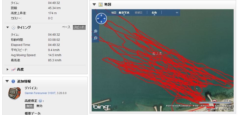 結果は画像→のトラックログの通りで、ワンレグ最後の下手なジャンプの後ジャイブに入ろうとしたら、失速して失われた翼形が急激に復元した瞬間に、ブチッ、バキッ・・・と音がしてカイトが飛んだ。今回は手元のバーの半分が無くなっていた・・・コントロールバーがほぼ真ん中で折れてしまったのだ!^^;ウィンドでマストやブームが折れることはままあることだが、カイトのバーがこんなにきれいに切断するとは考えたこともなかった。