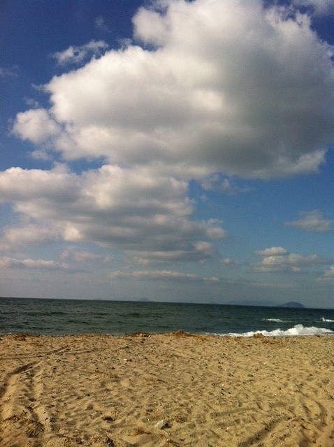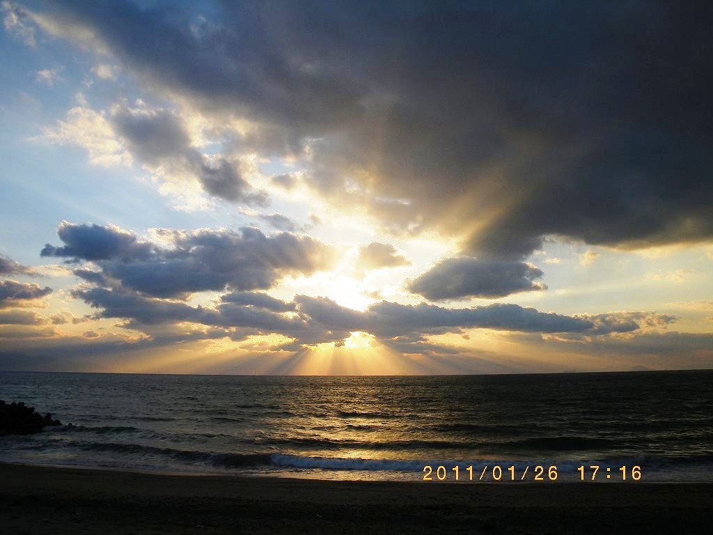 どうやら出遅れたようで、冷たい北西風は大きな波長で呼吸し始めていた。15㎡で少しは水に浸かったがアビームさえ取りがたい。後はトーイング・システムの調整などしながら体を温めているうちに、お日様は西に傾き今日も見事な夕焼け空に変わっていった。ずいぶん昔からそうなのだが、海でも山でも空でも、一人静かにこの種の空気の中にいると、たいがいアホな私もいくらか思索的になる。