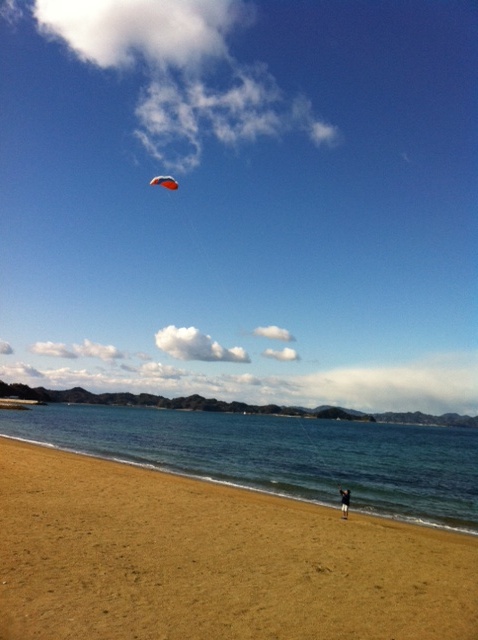 「寒いでしょう・・・何をされてるんですか?」・・・こういう状況で初めて会う人には、およそいつもこんな感じで私の方から声をかけることが多いのですが、返ってきた答えは、なんと・・・「吟遊(ぎんゆう)」でした^^;。吟遊詩人の吟遊ですよ!・・・さすがに山頭火や俳句の街を背景に持つ土地柄だなぁ・・・と感心しながら、私もしばらくカイトのお話しをすることに。