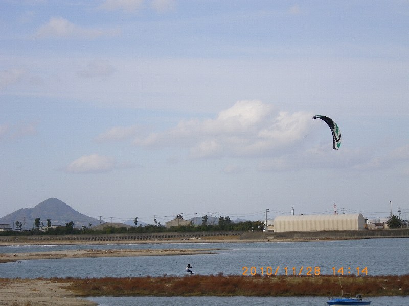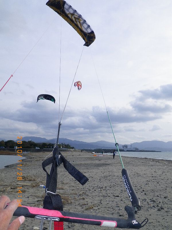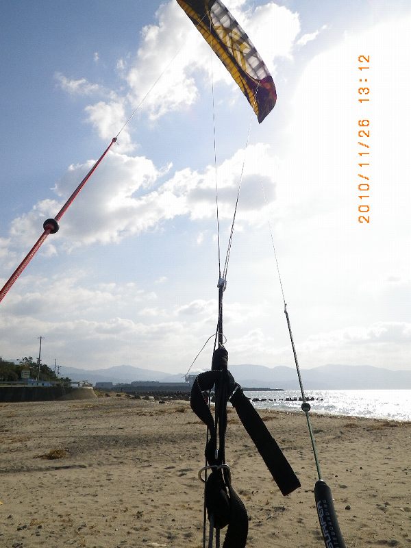 こないだショップのMさんから頂いた懐かしいセッションの285でカイトを振るとどんなことになるか試してみることに・・・しかし、やっぱりそれなりの練習をしないと、ウィンドの板を走らすことは難しいです・・ハイ^^;。
