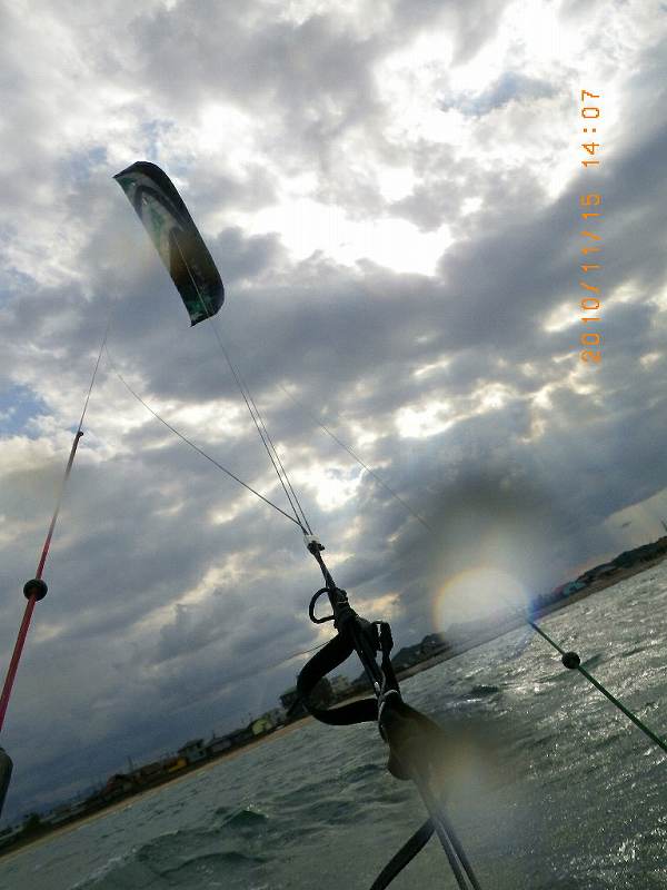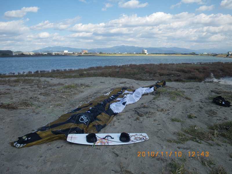 問題は板・・・ウィンドでは短いボードのことを板と呼ぶことが多いが、カイト用の板はほんとに板そのものだ。借りている板は微風用のもので157cmもある。強風下でカイトに余裕があっても、板が跳ねて苦労を感じることが多くなった。