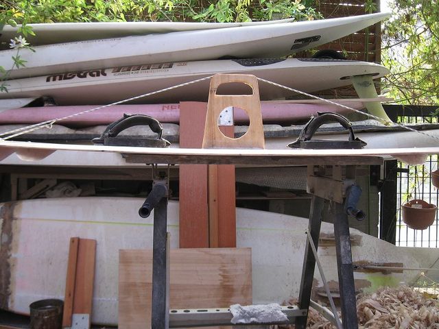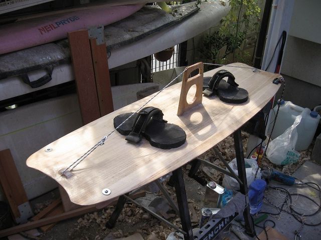 量産用でなければもっと軽くできるはずだし、もう少し薄くして板に「しなり」を持たせてロッカーを「可変」にすれば、より広い風域で使えるものになるはずだ・・・と考えた。