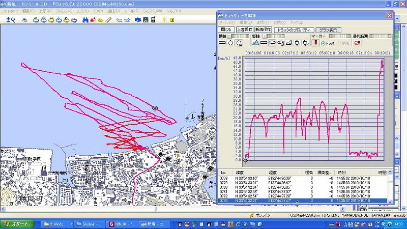 風はブローで10m弱。15㎡のラムエアをかなりデパワーしてジャストのコンディション。初めて乗るにはちと厳しい条件で、風が弱まるのを待ってたんですが、時間と共にますます安定して上がってきたので、仕方なしとして走り始めました。