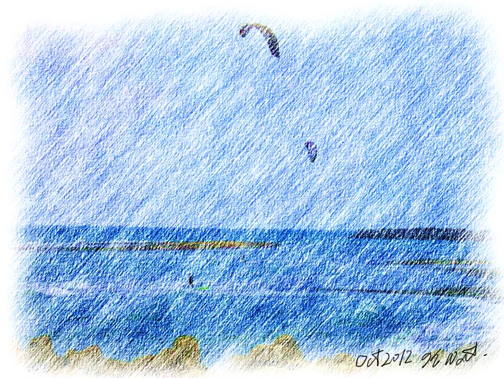 今日の塩屋海岸には、安定した腰の強い西寄りの風が入っていた。火曜日以来5日ぶりの順風だ。私の海通いは、多くの愛好家が楽しんでいる散歩やジョギングと同じで、午後の日課になっている。3日も海風を吸わないと、なんだか身体や頭の中に良からぬガスが溜まったような気分になる。