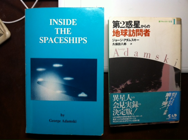 こんな浮世離れした事々に想いを巡らせながら、私は二冊の本を書棚から引っ張り出していた。中央アート社から出ている『新アダムスキー全集』の第一巻と、アメリカのアダムスキー財団からアマゾン経由で購入した"Inside The Spaceships"だ、両巻の内容は対応している。