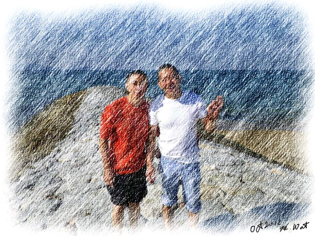 すぐに2人は私の存在を認めて、ニコニコしながら近づいてきた。途中で中国語らしい会話が耳に届いた。「ああ、中国から仕事か観光にでも来て、この美しい海岸に立ち寄ったのだろう・・・」