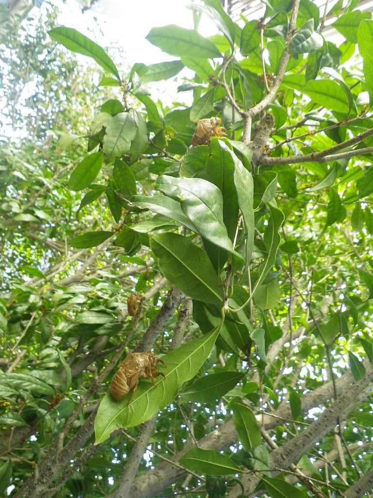落ち葉などは元より放ったらかしなので、庭の土は一部、腐葉土と化し、これがまた、ミミズやセミの幼虫たちにとっても絶好の住処(すみか)になっている。枝のあちこちには、今夏大いに歌い騒いだクマゼミの抜け殻が、10月になっても落ちることなくそのまま残っていた。